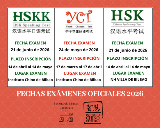 Ya están publicadas las fechas de los EXÁMENES OFICIALES DE CHINO 2024. Podéis encontrar toda la información sobre fechas y plazos de inscripción en el siguiente enlace Examenes