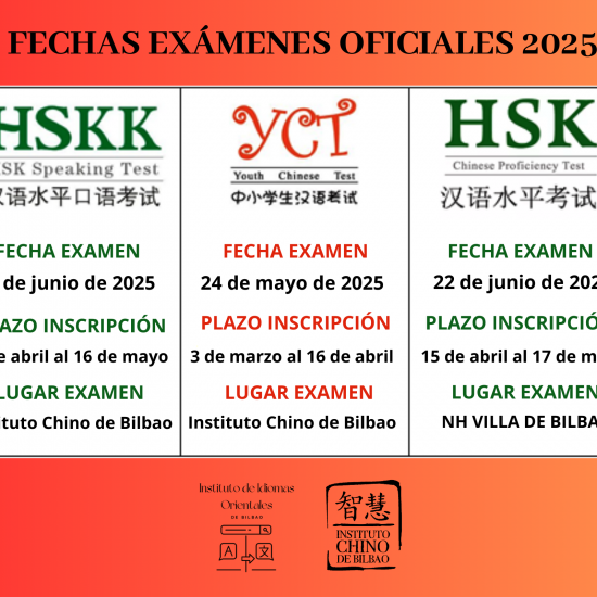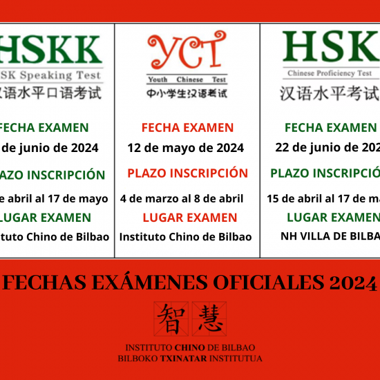 Ya están publicadas las fechas de los EXÁMENES OFICIALES DE CHINO 2024. Podéis encontrar toda la información sobre fechas y plazos de inscripción en el siguiente enlace Examenes